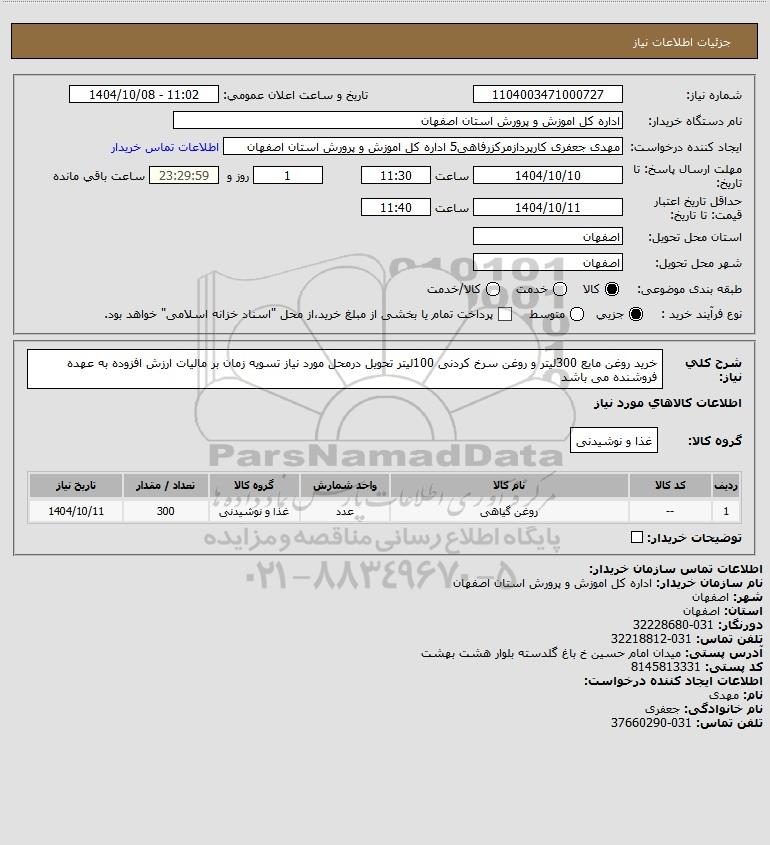 | 1 | -- | روغن گیاهی | عدد | غذا و نوشیدنی | 300 | 1404/10/11 |