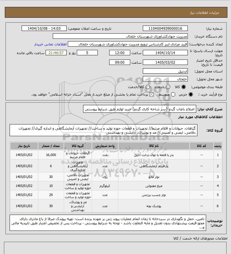 نام دستگاه خریدار:مدیریت جهادکشاورزی شهرستان خلخال