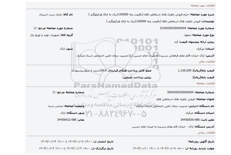 عنوان معامله: فروش باطری های اسقاطی ups