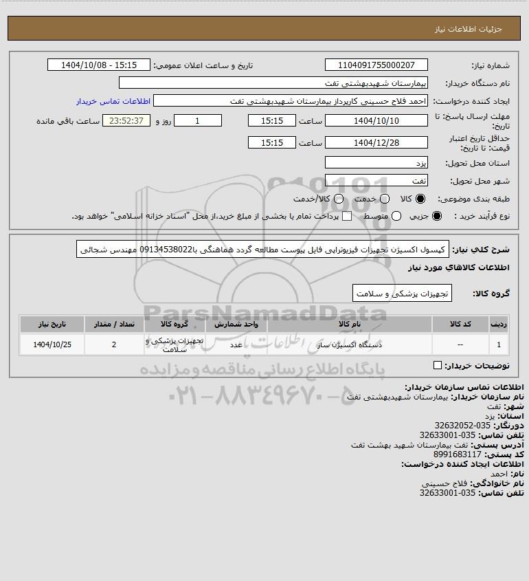 نام دستگاه خریدار:بیمارستان شهیدبهشتی تفت