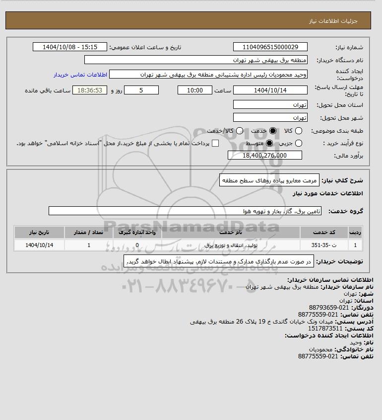 شرح کلی نیاز: مرمت معابرو پیاده روهای سطح منطقه