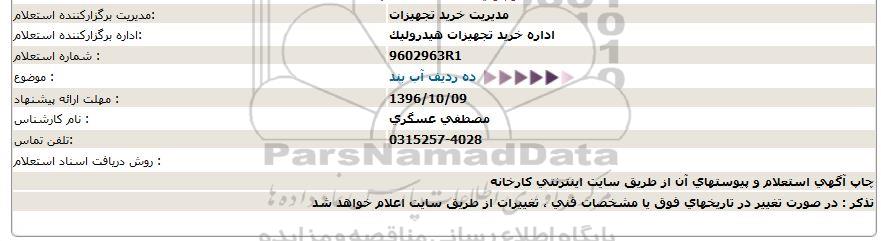 اداره برگزارکننده استعلام:     اداره خرید تجهیزات هیدرولیک