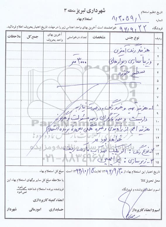 تاریخ اعتبار این استعلام بها 96.9.30 لغایت 96.10.15