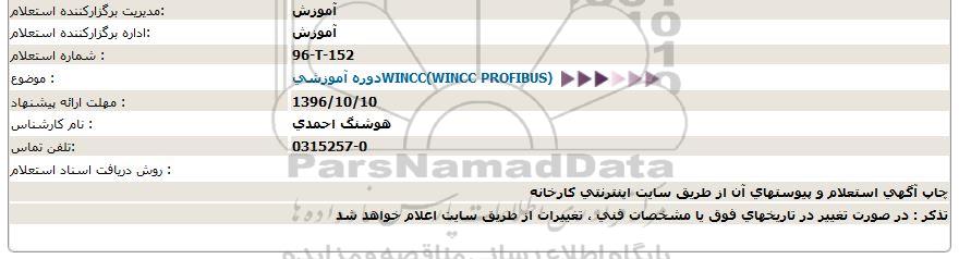 استعلام دوره آموزشیWINCC(WINCC PROFIBUS) , استعلام دوره آموزشیWINCC(WINCC PROFIBUS)
