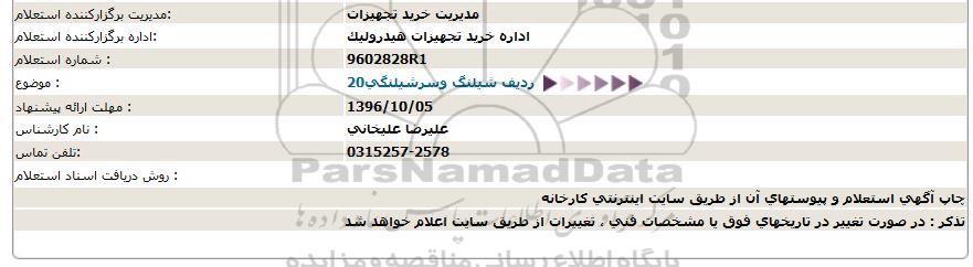 اداره برگزارکننده استعلام: اداره خريد تجهیزات هیدرولیک