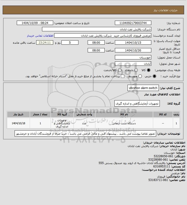 نام دستگاه خریدار:شرکت پالایش نفت ابادان
