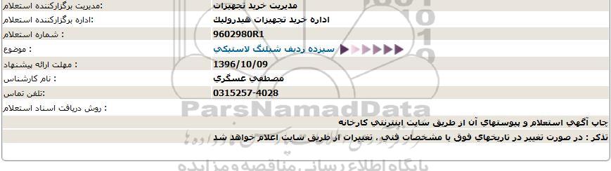 اداره برگزارکننده استعلام:اداره خرید تجهیزات هیدرولیک
