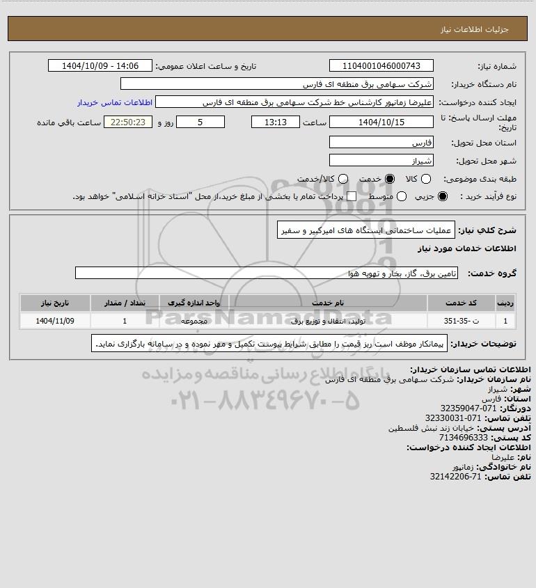 نام دستگاه خریدار:شرکت سهامی برق منطقه ای فارس
