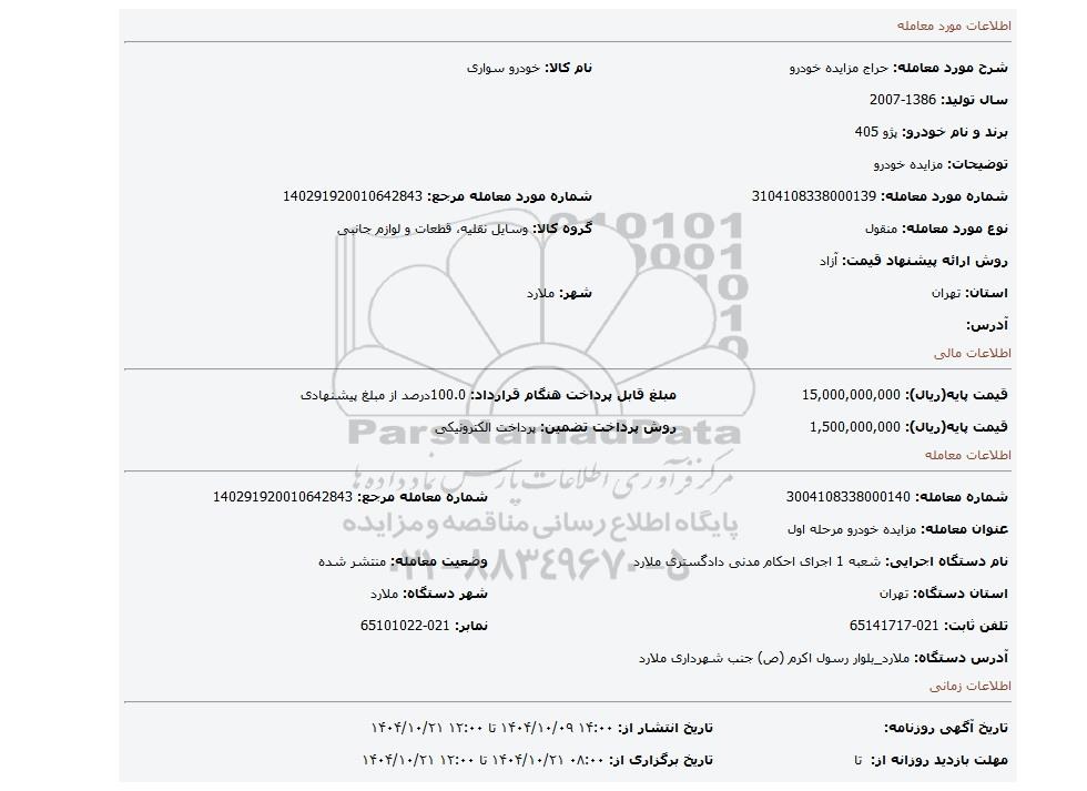 | شماره مورد معامله: 3104108338000139 | شماره مورد معامله مرجع: 140291920010642843 | |