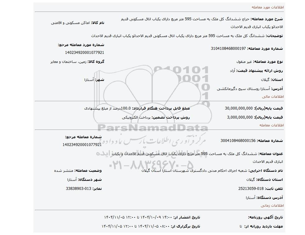 | شماره معامله: 3004108468000156 | شماره معامله مرجع: 140234920001077921 | |
