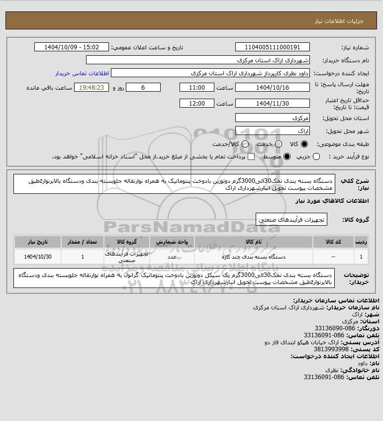 نام دستگاه خریدار:شهرداری اراک استان مرکزی