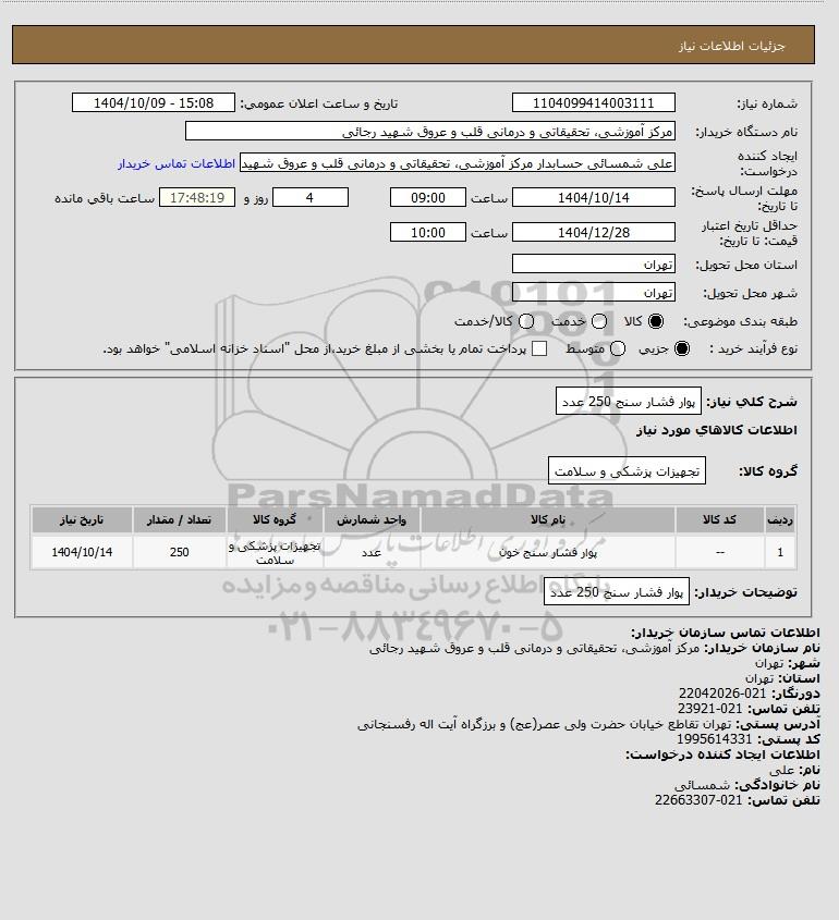 1 -- پوار فشار سنج خون عدد تجهیزات پزشکی و سلامت 250 1404/10/14