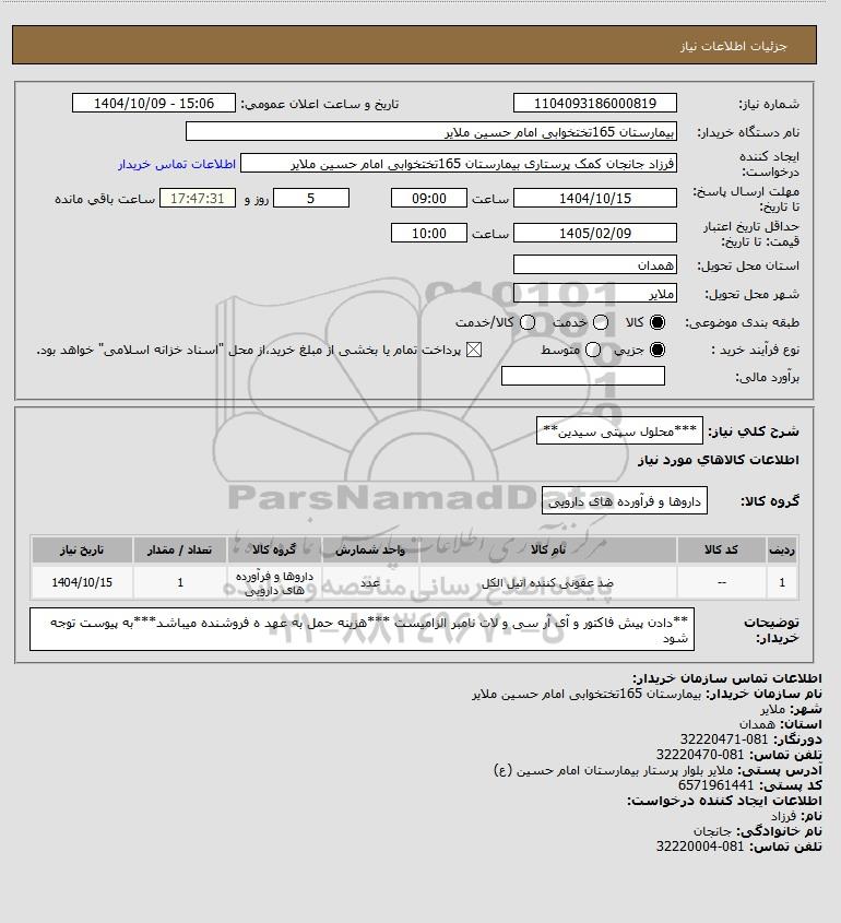شرح کلی نیاز: ***محلول سپتی سیدین**