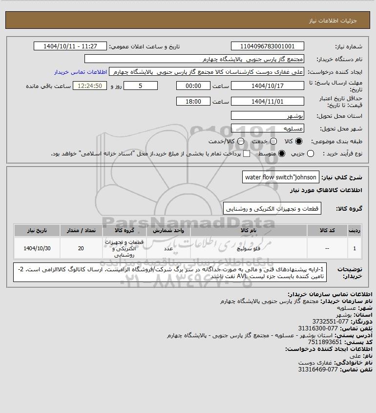 شرح کلی نیاز: water flow switch"johnson