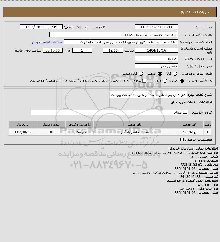 شرح کلی نیاز: هزینه ترمیمو اصلاح سرعتگیر طبق مشخصات پیوست
