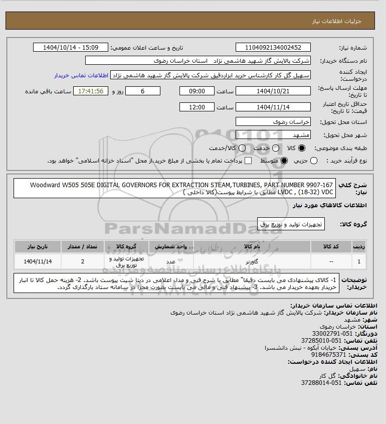نام دستگاه خریدار:شرکت پالایش گاز شهید هاشمی نژاد استان خراسان رضوی