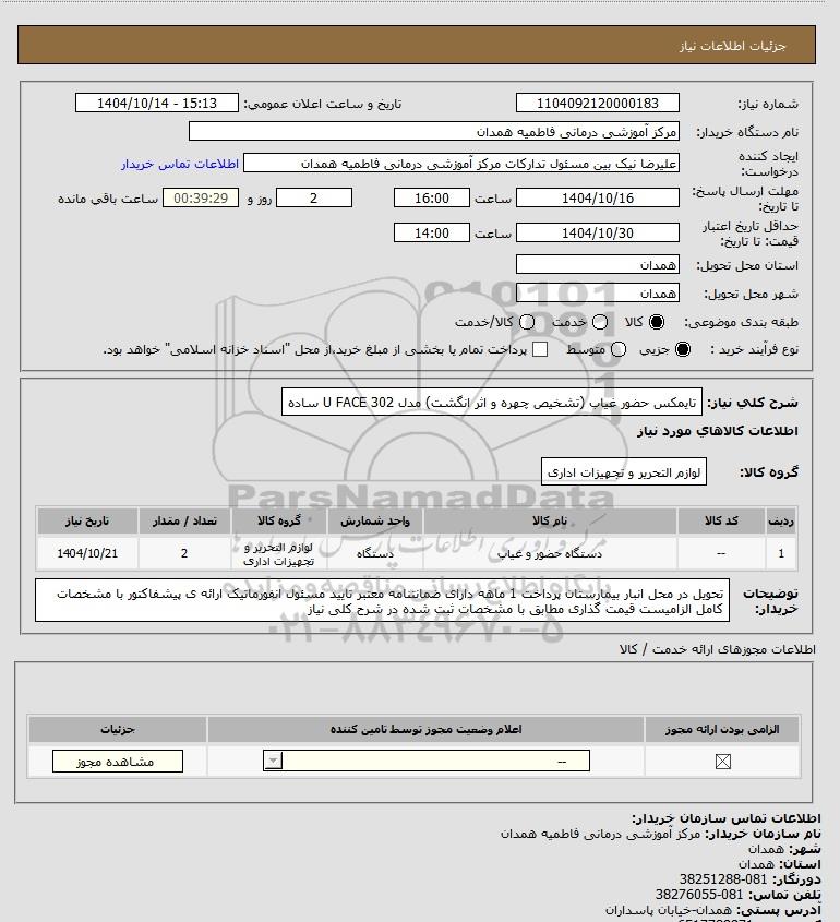 نام سازمان خریدار: مرکز آموزشی درمانی فاطمیه همدان