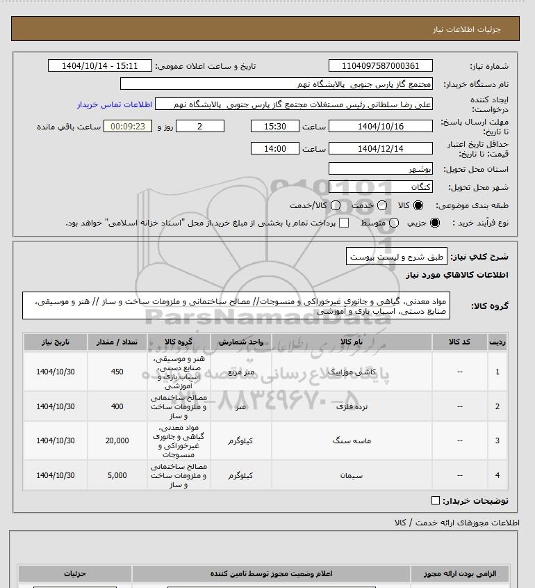 نام سازمان خریدار: مجتمع گاز پارس جنوبی پالایشگاه نهم