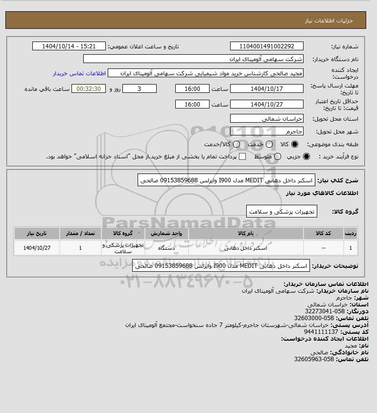نام دستگاه خریدار:شرکت سهامی آلومینای ایران