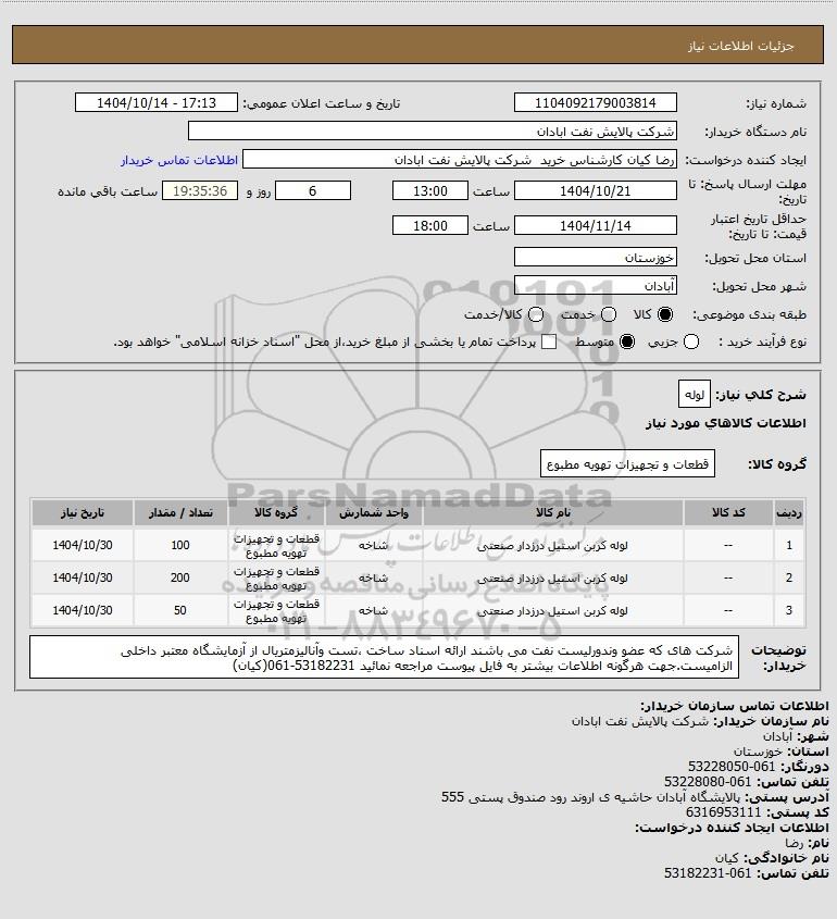 نام سازمان خریدار: شرکت پالایش نفت ابادان