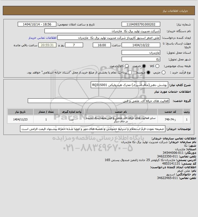 شرح کلی نیاز: پوشش دهی(متال اسپری) محرک هیدرولیکی RQ31S001