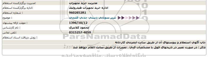 اداره برگزارکننده استعلام: اداره خرید تجهیزات هیدرولیک