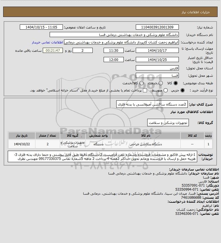 شرح کلی نیاز: 2عدد دستگاه ساکشن آمبولانسی با بدنه فلزی