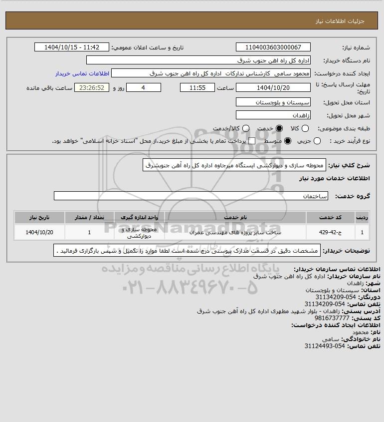 شرح کلی نیاز: محوطه سازی و دیوارکشی ایستگاه میرجاوه اداره کل راه آهن جنوبشرق