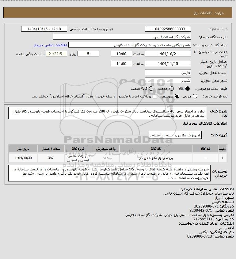 نام دستگاه خریدار:شرکت گاز استان فارس