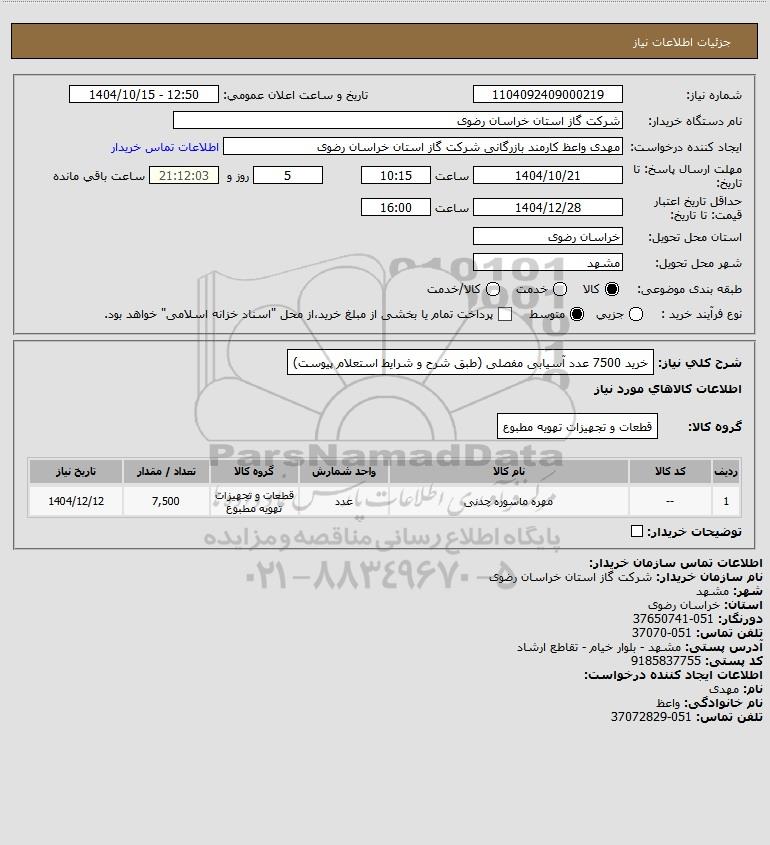 نام دستگاه خریدار:شرکت گاز استان خراسان رضوی