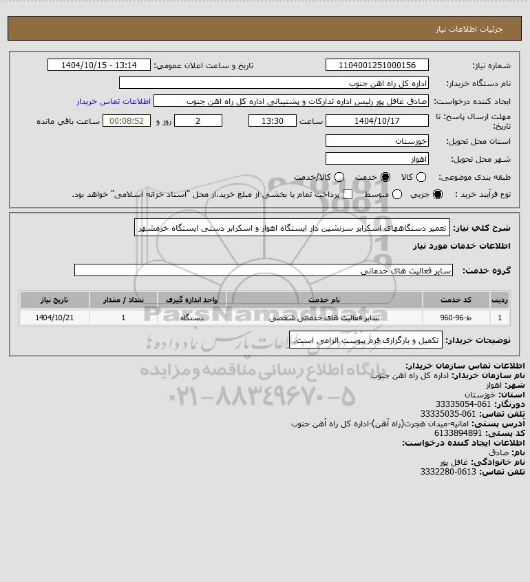 نام دستگاه خریدار:اداره کل راه اهن جنوب