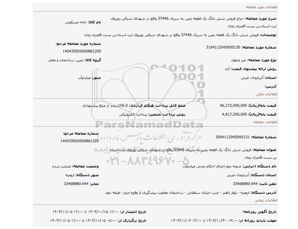 شماره معامله: 3004112045000131شماره معامله مرجع: 140435920000861205