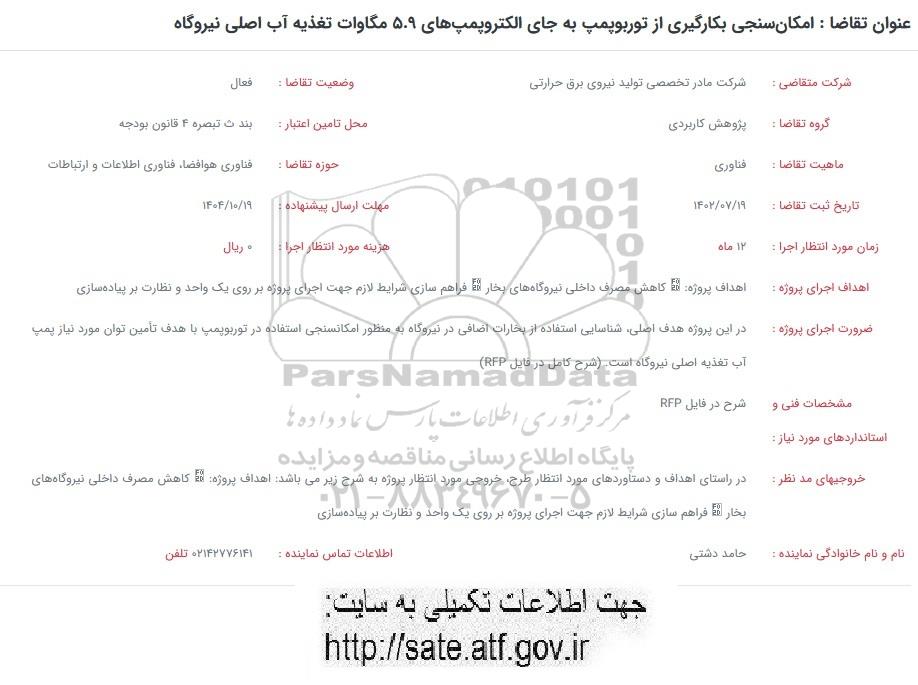شرکت متقاضی : شرکت مادر تخصصی تولید نیروی برق حرارتی