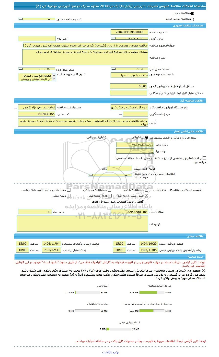 نام دستگاه اجرایی مناقصه گزاراداره کل اموزش و پرورش شهر تهرانمسئول ثبت مناقصهابوالقاسم محمد نژاد گنجی