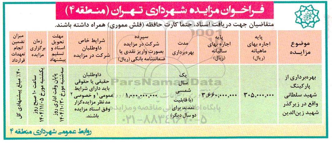فراخوان مزایده شهرداری تهران (منطقه 4) ؟
