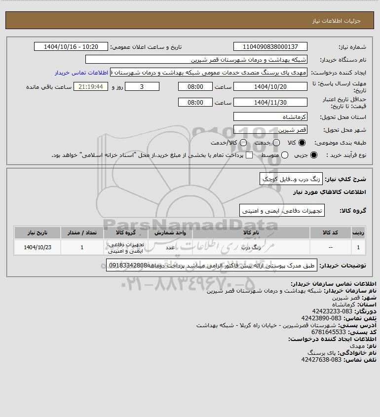 1 -- زنگ درب عدد تجهیزات دفاعی، ایمنی و امنیتی 1 1404/10/23