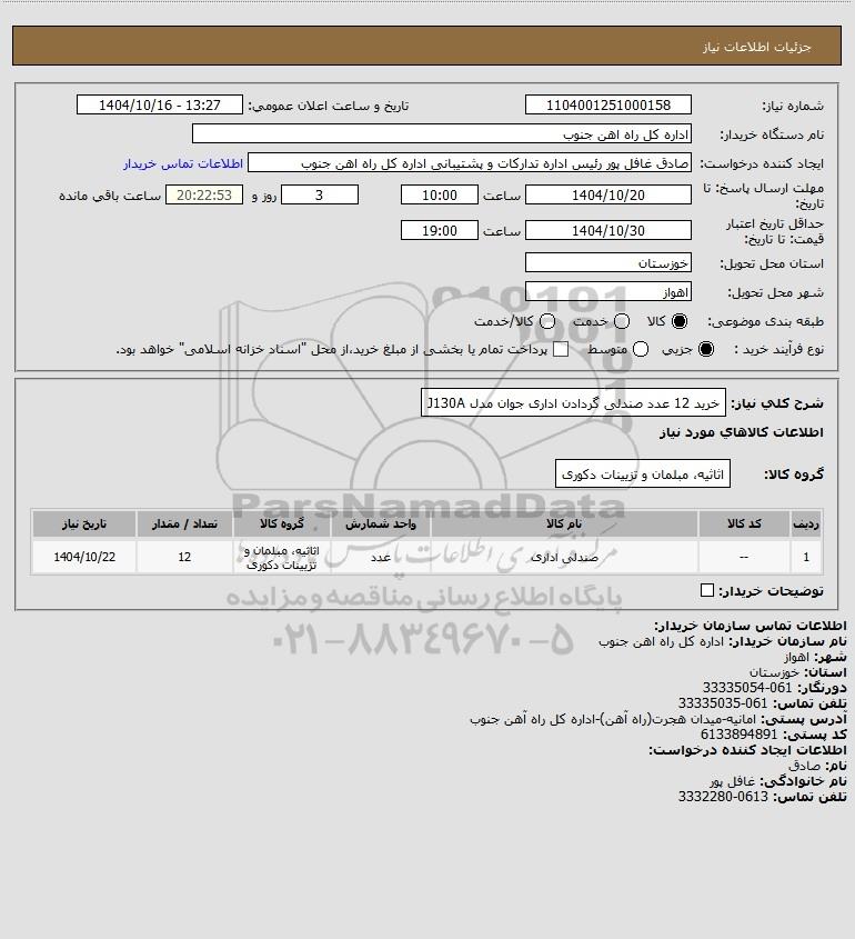 شرح کلی نیاز: خرید 12 عدد صندلی گردادن اداری جوان مدل J130A