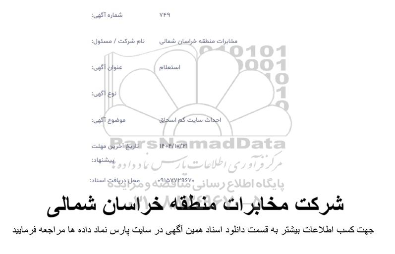 نام شرکت / مسئول: مخابرات منطقه خراسان شمالی
