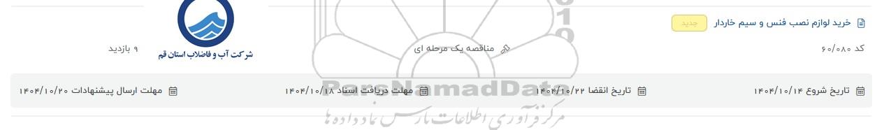 تاریخ شروع 1404.10.14 - تاریخ انقضا 1404.10.22  - مهلت دریافت اسناد 1404.10.18 - مهلت ارسال پیشنهادات 1404.10.20
