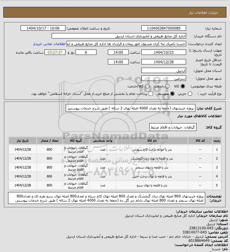 نام دستگاه خریدار:اداره کل منابع طبیعی و ابخیزداری استان اردبیل