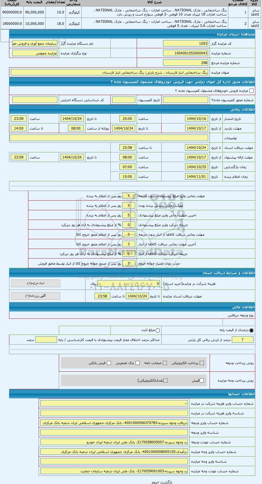 | عنوان مزایده | رنگ ساختمانی انبار لارستان | |||