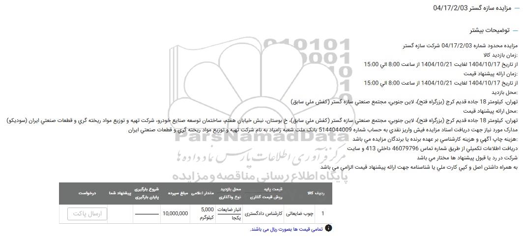 مزایده محدود شماره 04.17.2.03 شرکت سازه گستر