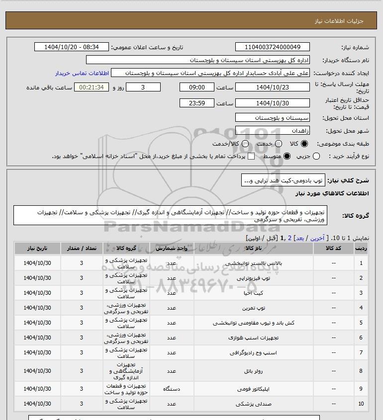 | 1 | -- | بالانس بالستر توانبخشی | عدد | تجهیزات پزشکی و سلامت | 3 | 1404/10/30 |