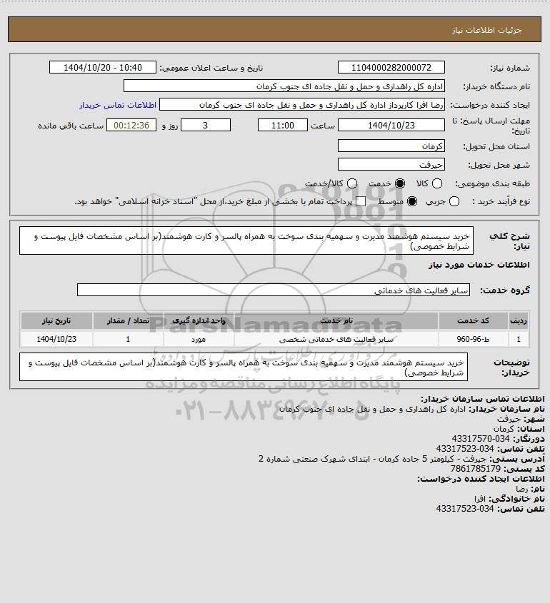 نام سازمان خریدار: اداره کل راهداری و حمل و نقل جاده ای جنوب کرمان