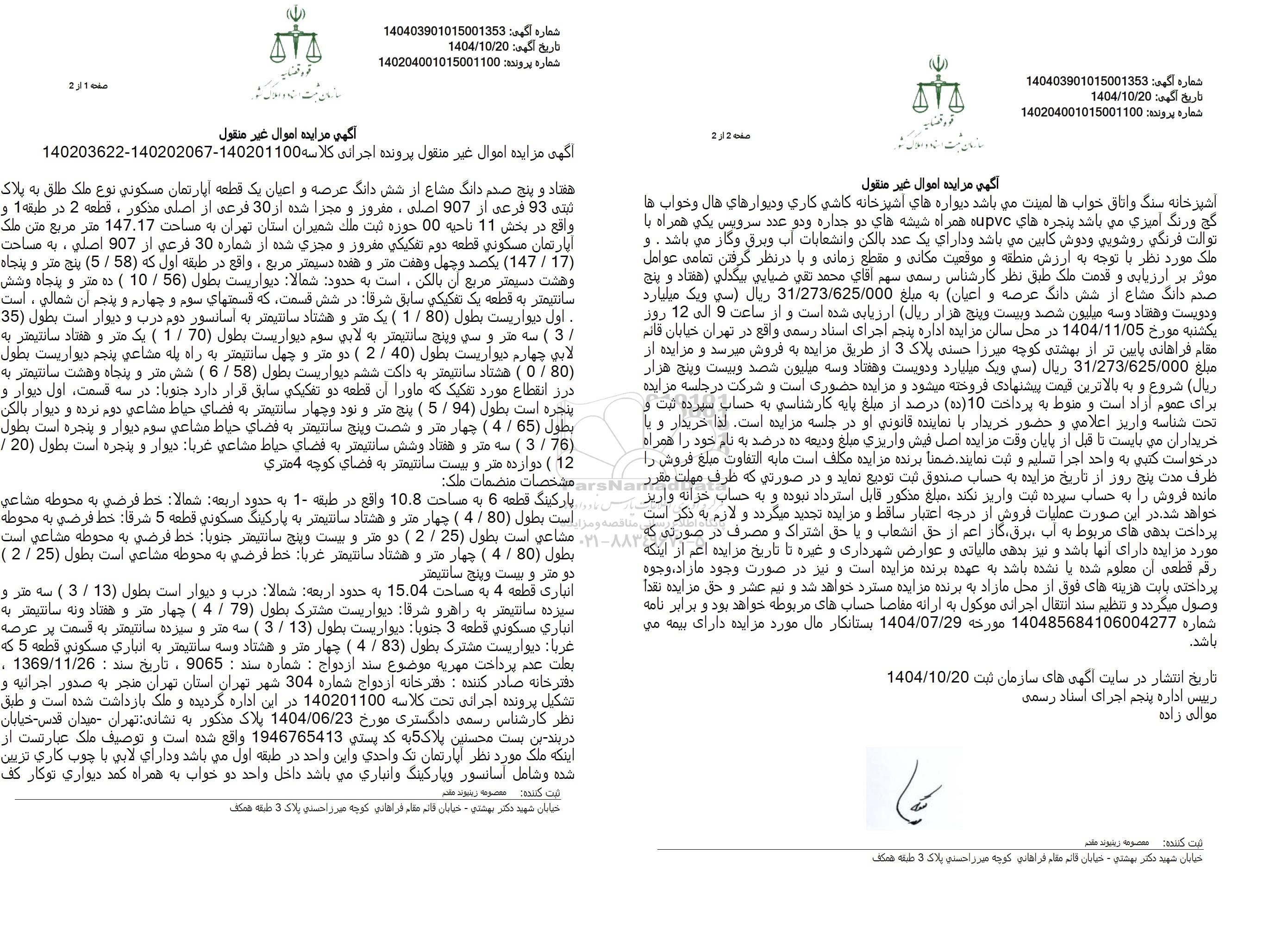 آگهی مزایده اموال غیر منقول پرونده اجرائی کلاسه 140201100-140202067-140203622