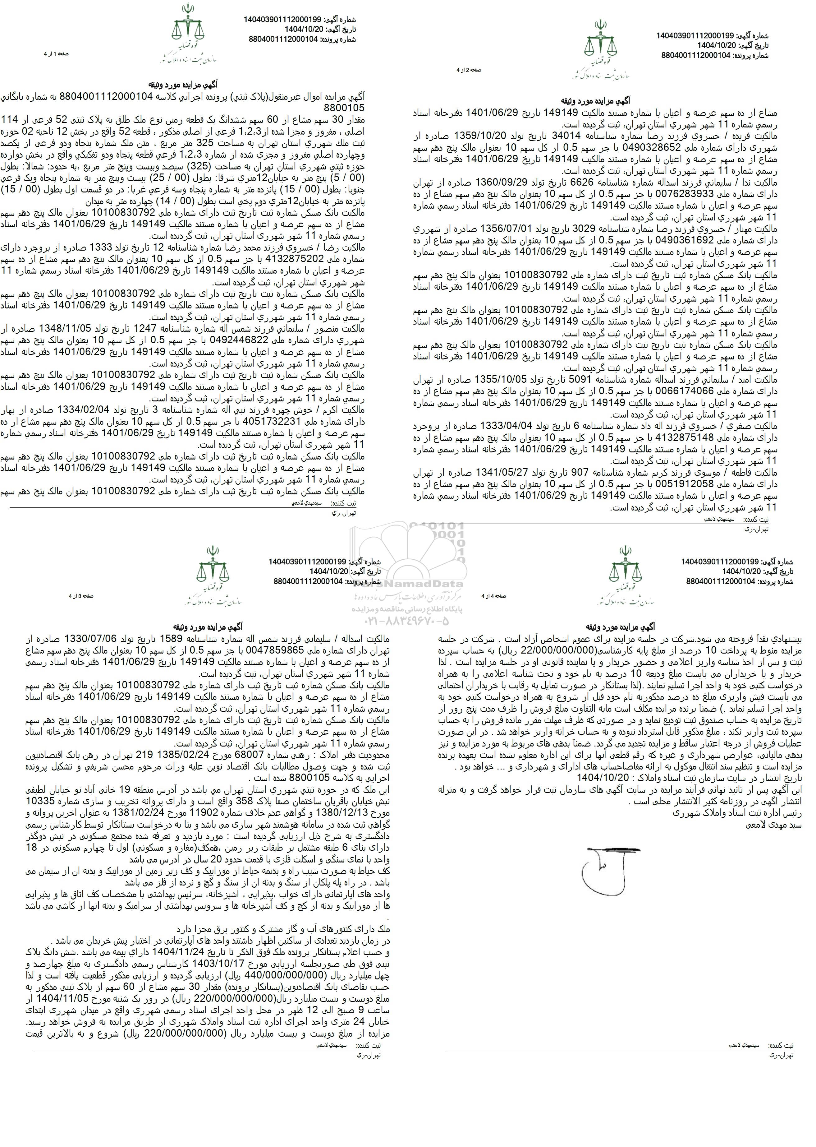 آگهی مزایده اموال غیر منقول (پلاک ثبتی) پرونده اجرایی کلاسه 88040011120000104 به شماره بایگانی 8800105