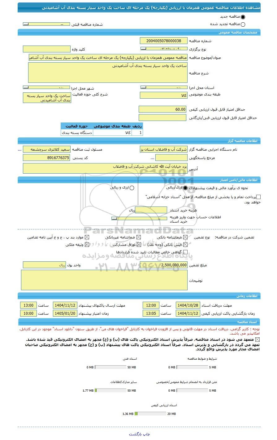 | مبلغ تضمین | 2,500,000,000 | واحد پول | ریال |