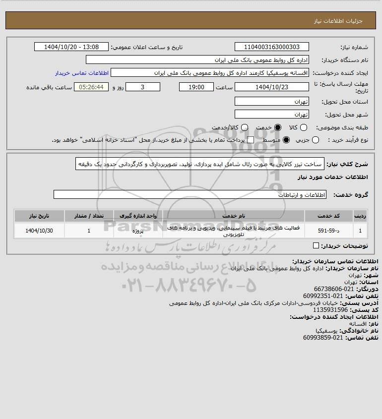 نام سازمان خریدار: اداره کل روابط عمومی بانک ملی ایران