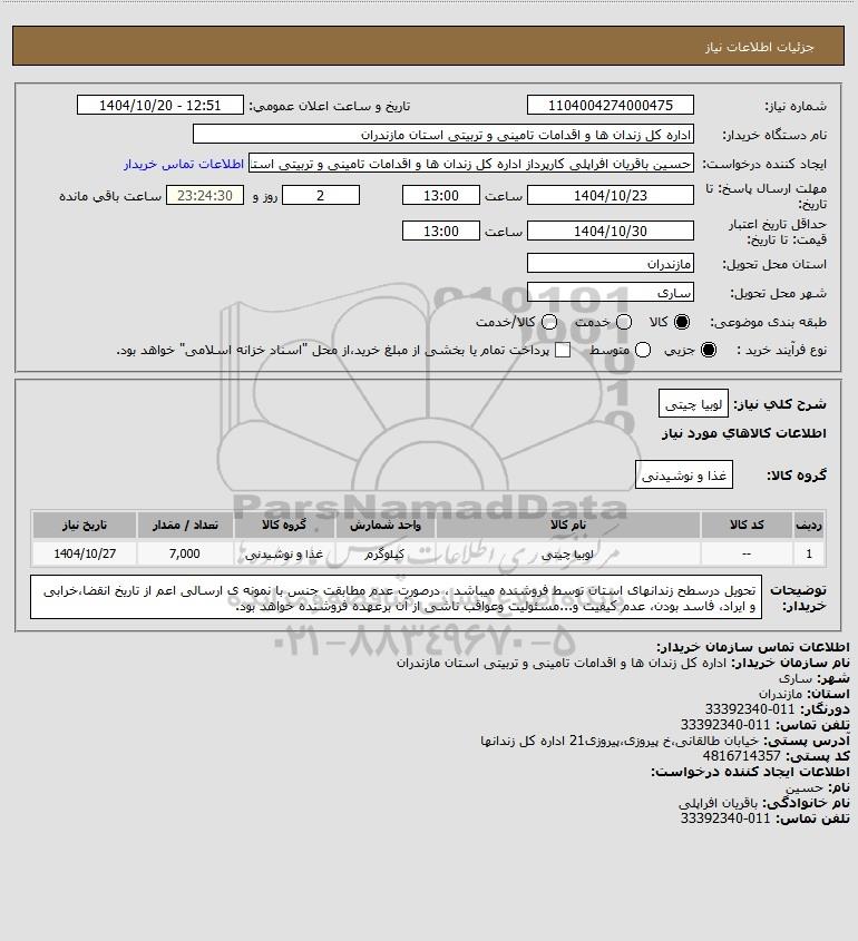 1 -- لوبیا چیتی کیلوگرم غذا و نوشیدنی 7,000 1404/10/27