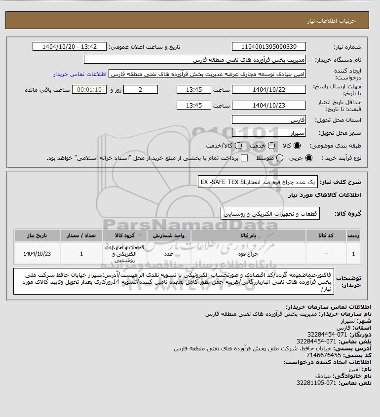 استعلام یک عدد چراغ قوه ضد انفجارEX -SAFE TEX SL, استعلام یک عدد چراغ قوه ضد انفجارEX -SAFE TEX SL